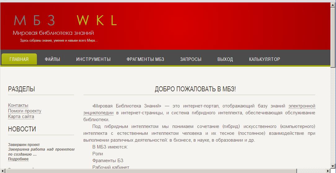 В основе МБЗ лежит представление знаний как семантической сети, состоящей из элементов знаний и связей между ними. Для сбора, анализа и представления знаний в компьютере создана система гибридного интеллекта. Теории и практике построения и исследования систем гибридного интеллекта посвящена диссертация [2].
